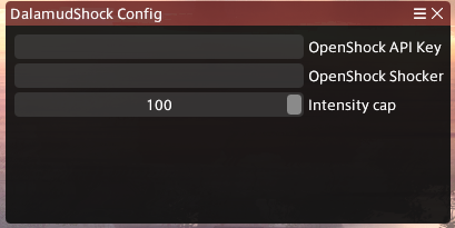 Open dalamud plugin list, DalamudShock Settings and slap your api key and shocker id there. also has a power limiter if you need it. Don't have an api key? well, Grab it over here!.